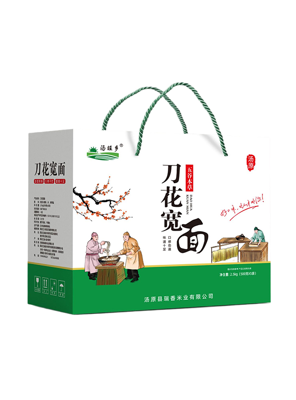 瑞香米業(yè) 產品中心 品牌是企 業(yè)發(fā)展的 推助器 編織袋裝 精品包裝 禮盒包裝 其他產品 刀花寬面 凈含量:2.5kg 價格:¥ 數(shù)量: 件 總價¥0 點擊購買 產品介紹